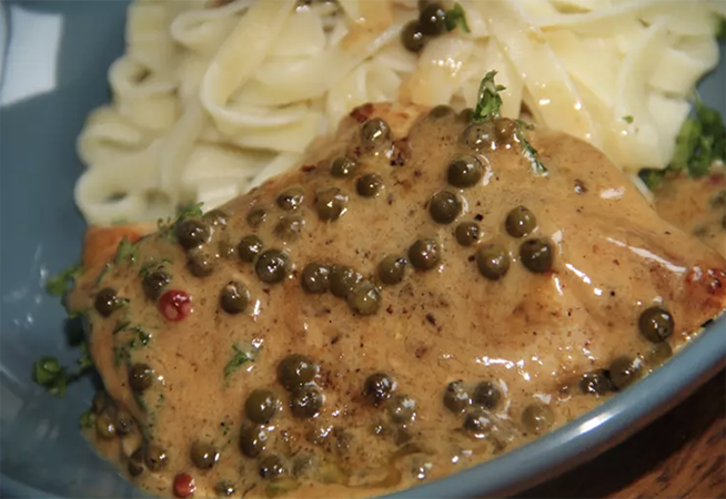 Escalope de poulet poivre vert